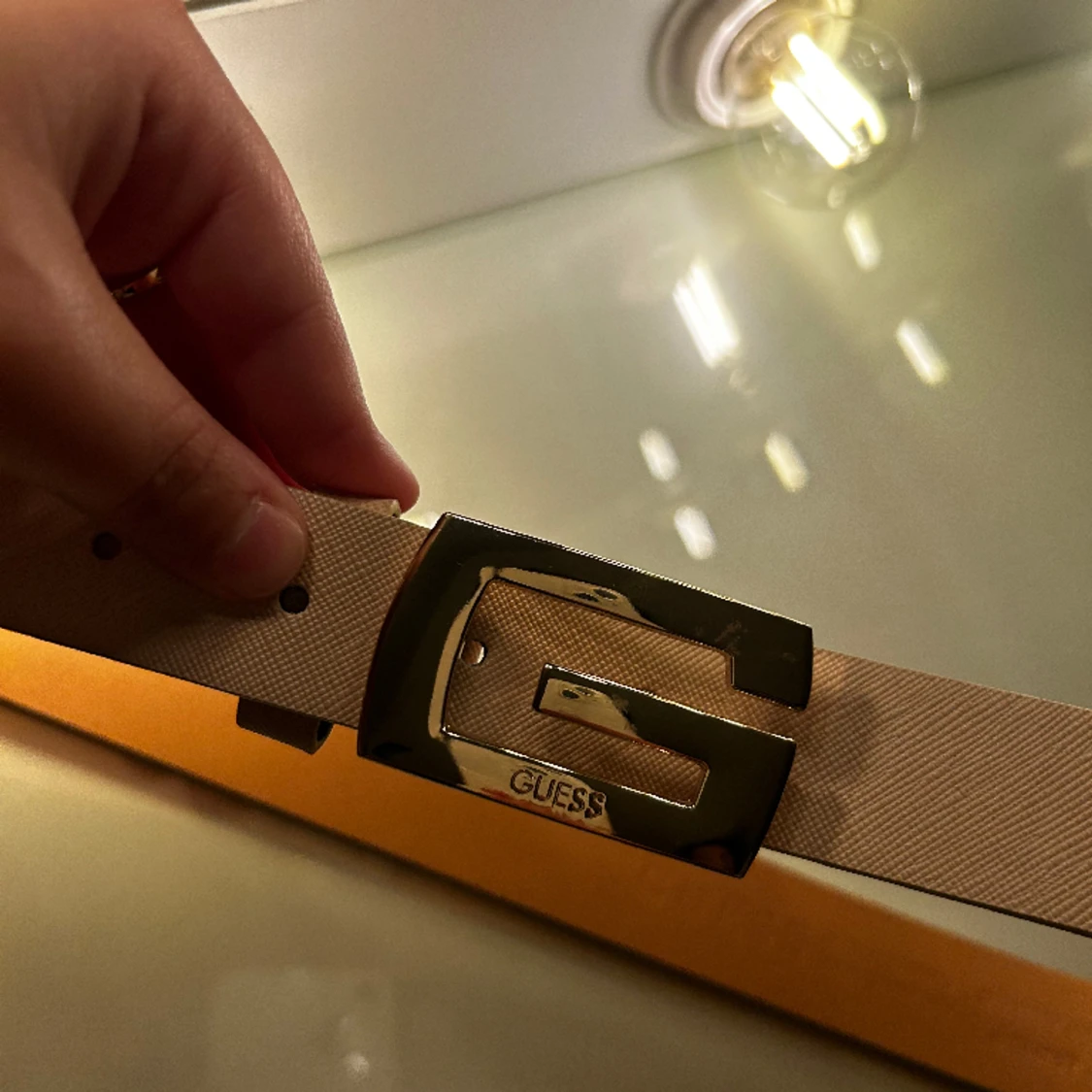 Ljusrosa guess skärp. Fin och aldrig använd endast ett extra hål gjort. Ny pris 549kr
