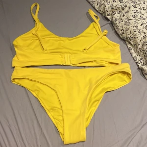 Gul bikini från Lindex storlek M på överdelen och S på underdelen. Använd en gång! 60kr plus frakt!