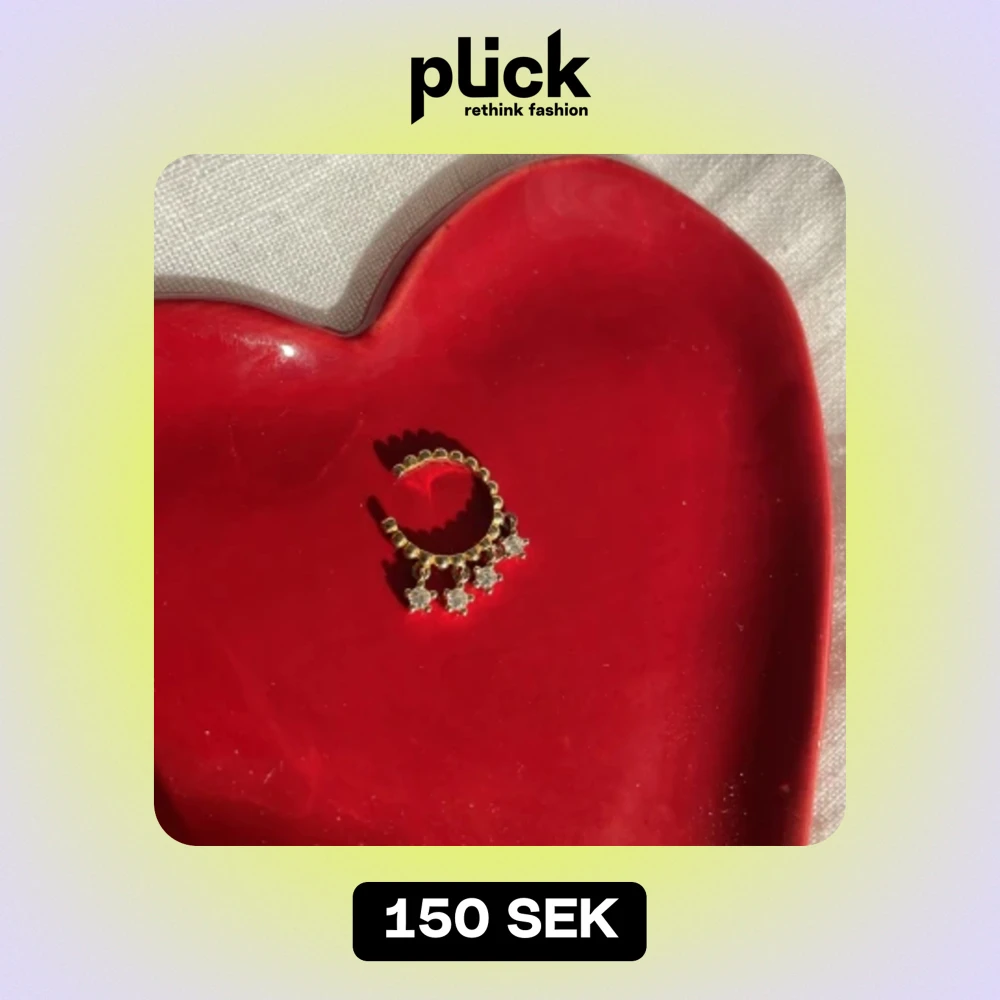 Earcuff i äkta silver med guldplättering. Alla stenar på plats. Mycket fint skick. Köpt i en butik i Portugal, minns tyvärr inte namnet på butiken/märket. Går att justera till örats storlek.