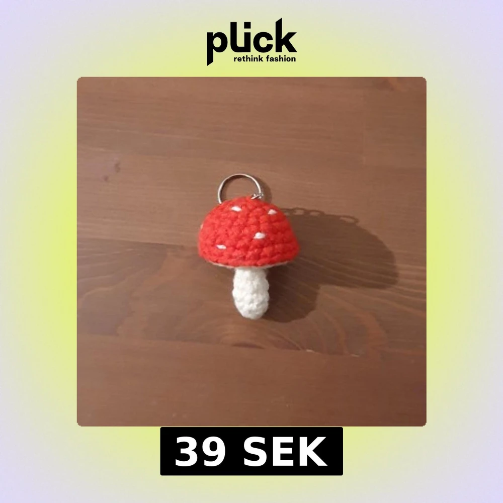 Virkad flugsvamp med nyckelring! Finns fler i olika färger. ca 7 x 6 cm. / 1st 39kr, 2st 69kr, 3st 99kr