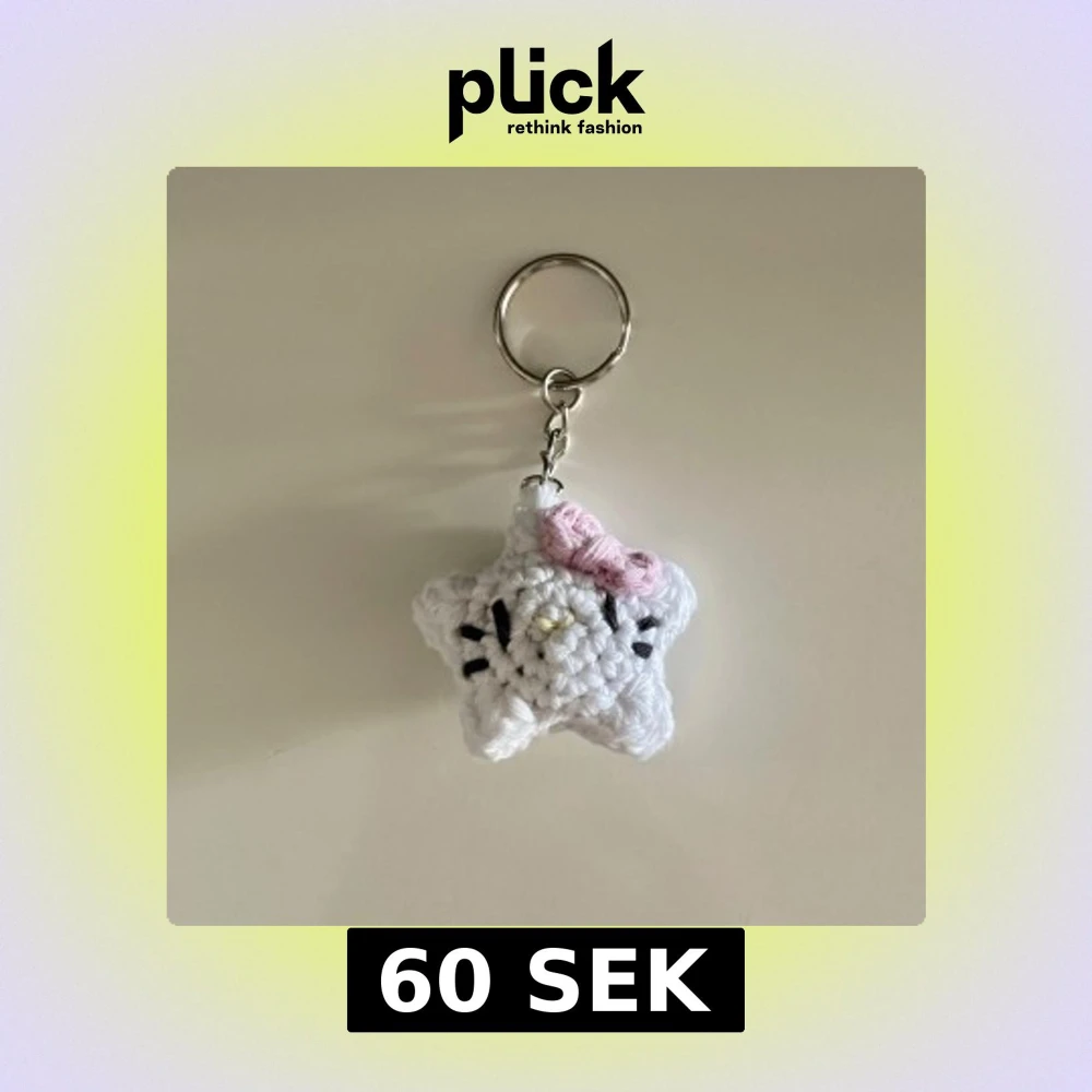 Söt handvirkad Hello Kitty nyckelring i form av en vit stjärna med broderade detaljer och en ljusrosa rosett. Perfekt att hänga på väskan eller nyckelknippan för en gullig touch. Fler Handvirkade produkter finns på min profil. Kan även göra specialbeställningar!🩷