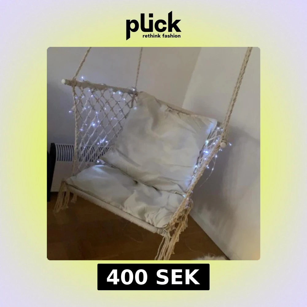 Inomhus gunga som är väldigt skön och bekväm när man vill mysa framför tv samtidigt gunga, har endats hängt upp den för och testa då jag har en annan.