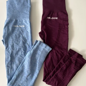 Riktigt sköna och mjuka träningstights från Relode. Dem blå är endast använda ett fåtal gånger. Dem lila är i mycket bra skick! Storlek S. Priset är satt för båda tightsen .