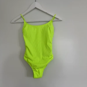 En neongrön baddräkt som aldrig har blivit använd. Storlek 34, men skulle säga att den är som en 32!