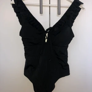 Superfin baddräkt, köpt nu i våras men aldrig använd. Volanger på armarna och djup i ryggen. Kuporna är vadderade men det kan tas bort. Passar Xs-S