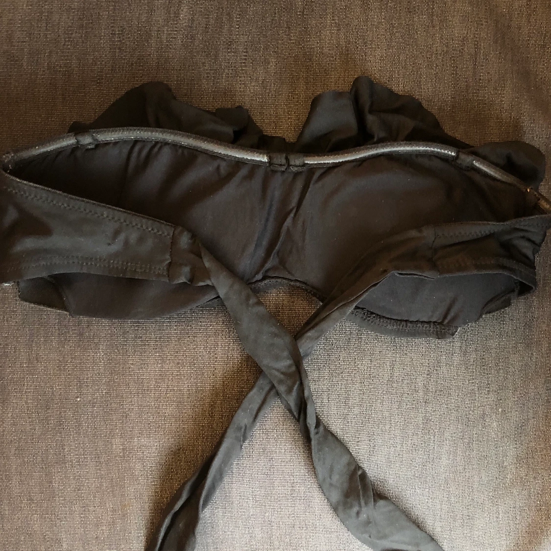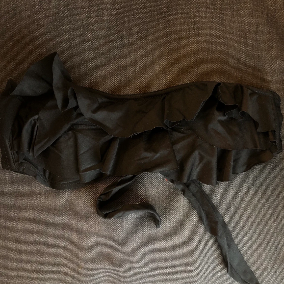 Jättefin svart bikini topp med volanger som man knyter baktill! Man kan sätta på band om man vill ha det. Den åker inte ner när man badar med den, sitter extra bra om man sätter på band. Bra skick!