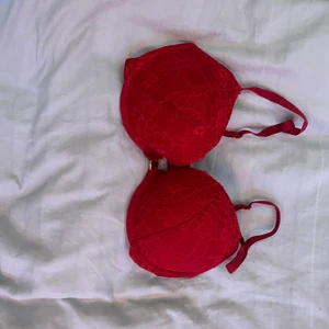 Röd BH med spets från h&m! Öppnas på framsidan! säljer eftersom den är gammal o inte används! 💕💕 har rätt mycket push up!!
