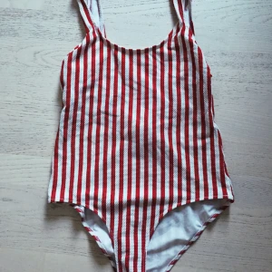 Baddräkt använd 1 gång (tvättad!!) Färg: röd och vit i storlek 38, M Finns att hämta i slussen, Stockholm eller skickas med posten för 39kr