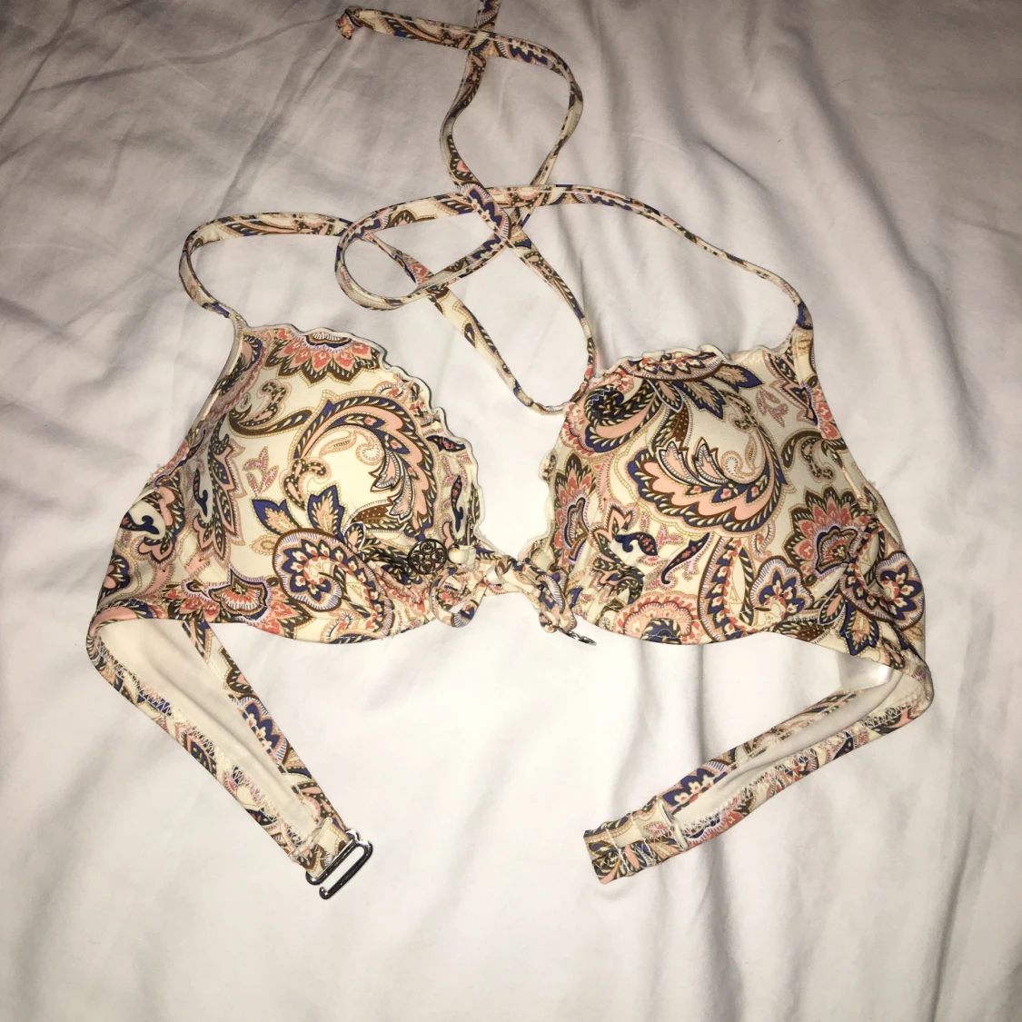 Super fin bikini överdel med orientaliskt mönster. Push up och ett spänne som man kan ändra till 3 olika storlekar. Säljer för köpte för liten storlek. Köpt i slutet på förra sommarn och använd några få gånger bara men tvättat efter. Frakt: runt 20-30kr