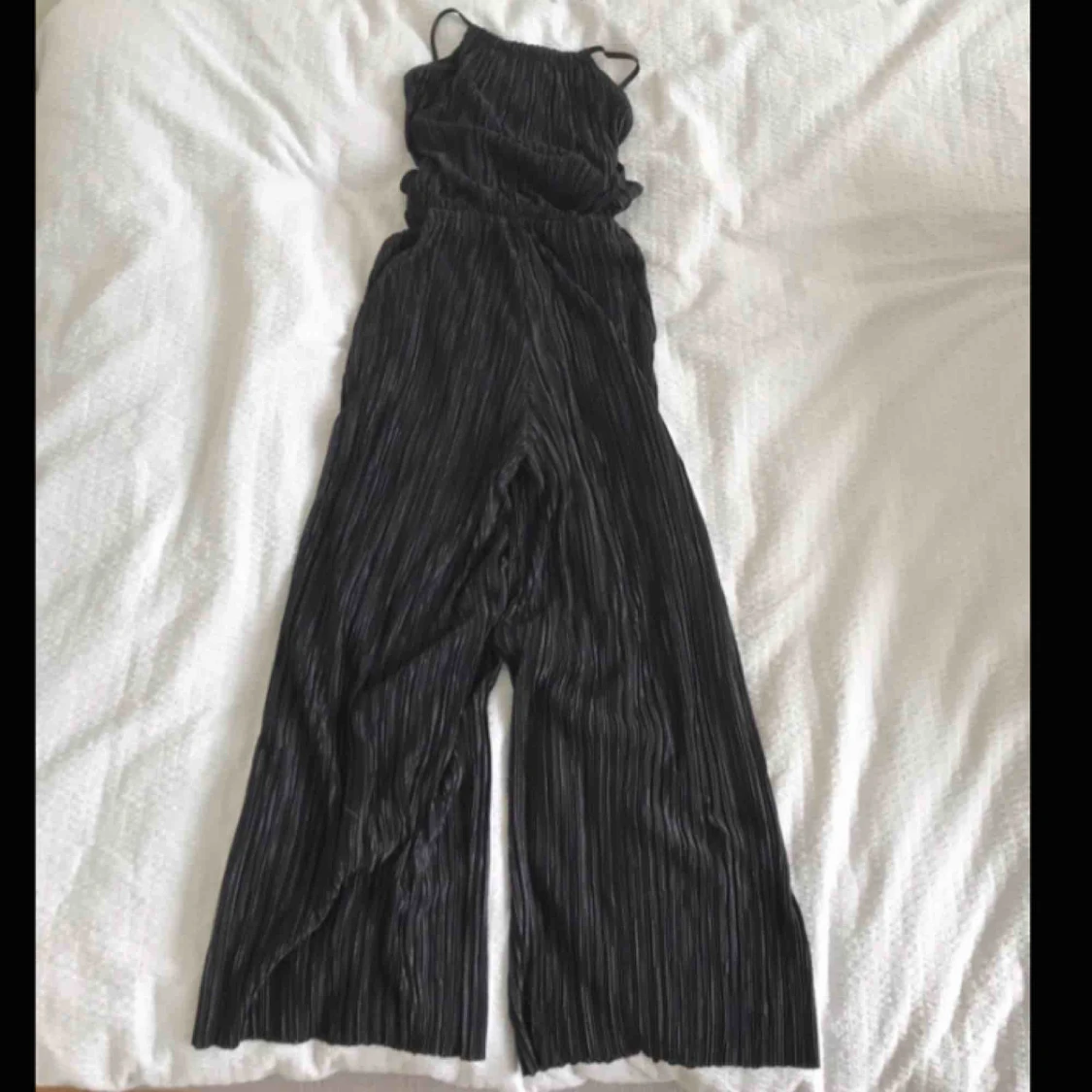 halterneck överdel och benen på byxdressen är lite kortare (culottes). Ett resårband i midjan. Ej använd. Tunn och skön.