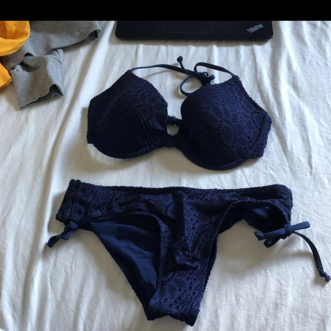 Bikini i fint skick från HM Mörkblå överdel i storlek 80B och underdel i storlek 34