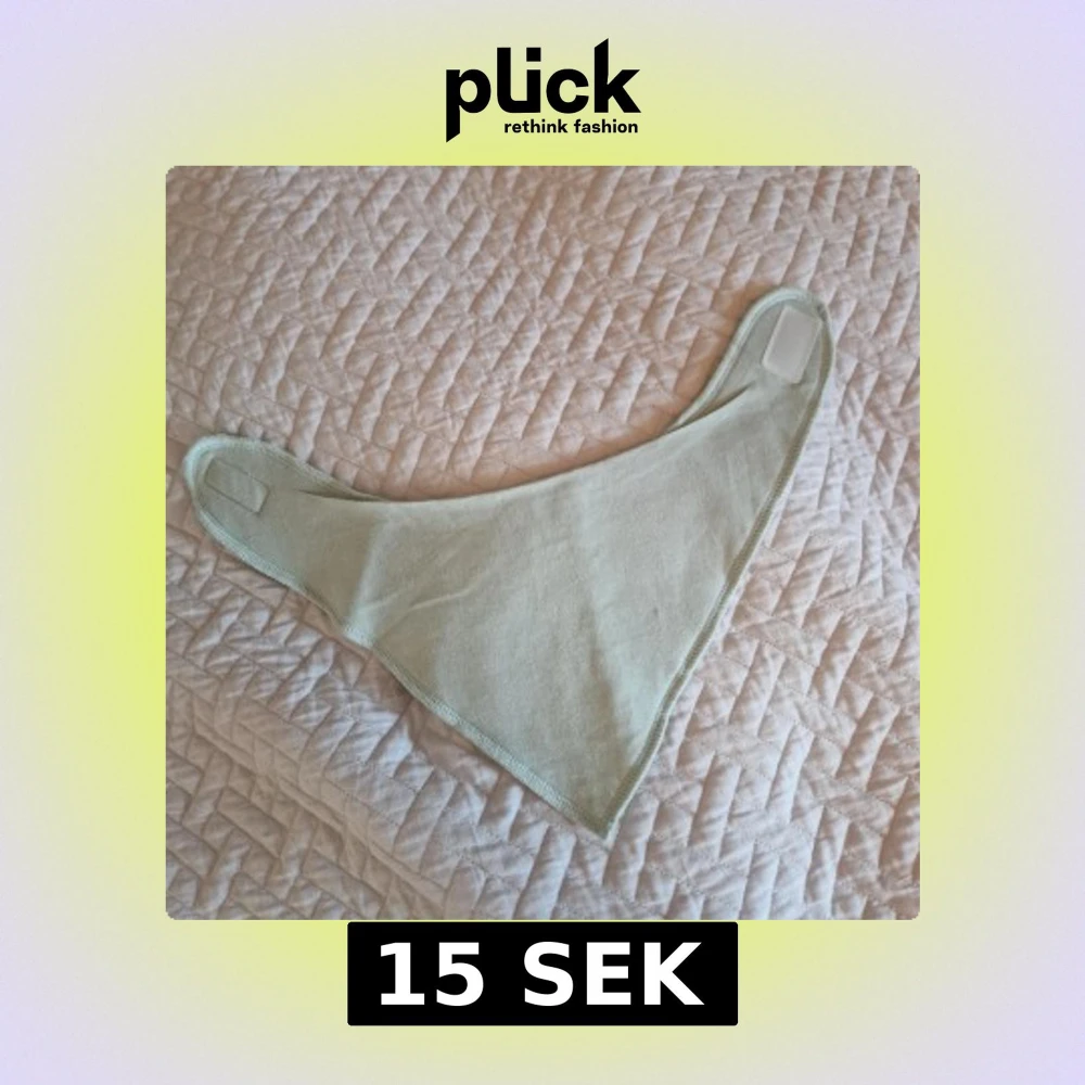 Ljusgrön dregglis/haklapp i mjuk fleece med praktisk kardborreknäppning. Triangelformad design som sitter snyggt runt halsen och är enkel att ta på och av. Aldrig använd!