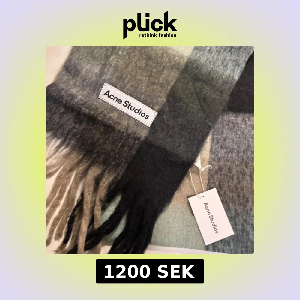 Mjuk och fluffig halsduk från Acne Studios i rutigt mönster i färg av grått, grönt, svart och beige. Pris kan diskuteras😊