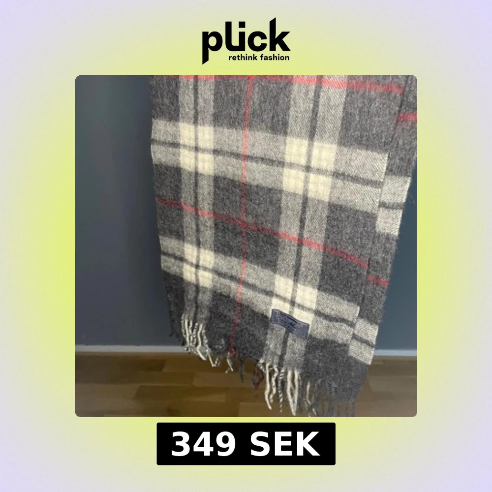 Snygg grå halsduk från Burberrys med klassiskt rutigt mönster i svart, vitt och en diskret röd linje. Gjord i 100% lammull och har fransar i ändarna. Perfekt för att ge din outfit en lyxig touch under kyliga dagar.
