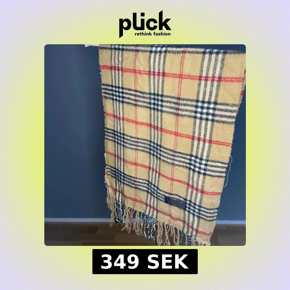 Snygg klassisk halsduk från Burberrys i beige med rutigt mönster i svart, vitt och rött. Gjord av 100% lammull och har fransar i ändarna. Perfekt accessoar för att lyfta din outfit med en tidlös vibe.