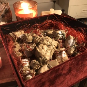 Handgjord kristall julkalender! Den innehåller 24 kristaller och är värda ca 850-1000kr men jag kan göra dom i andra prisklasser också! Dom innehåller allt från kluster till karvningar, en perfekt present! Varje kalender är helt unik :) Fri spårbar frakt!