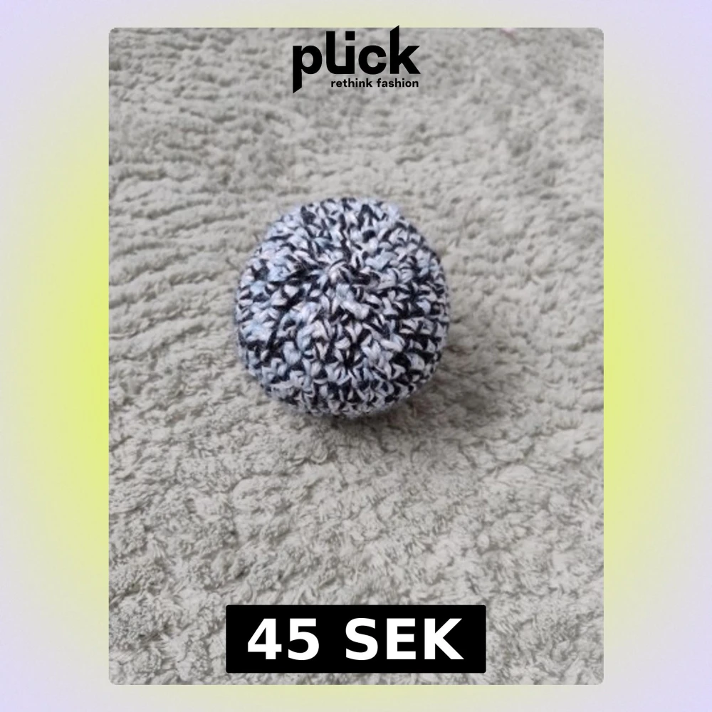 Säljer en handgjord virkad stressboll i svart vitt och blått. Perfekt när man känner sig stressad och vill lugna ner sig. Virkad av mig!