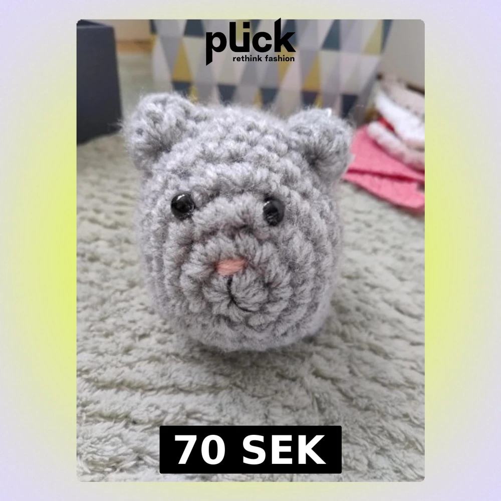 Handgjort virkat gosedjur i form av ett marsvin, virkad av mig. Virkad i tjockt, grått gran och fylld med mjuk vadd. Den har även ögon och nos, vilket gör den extra gullig.