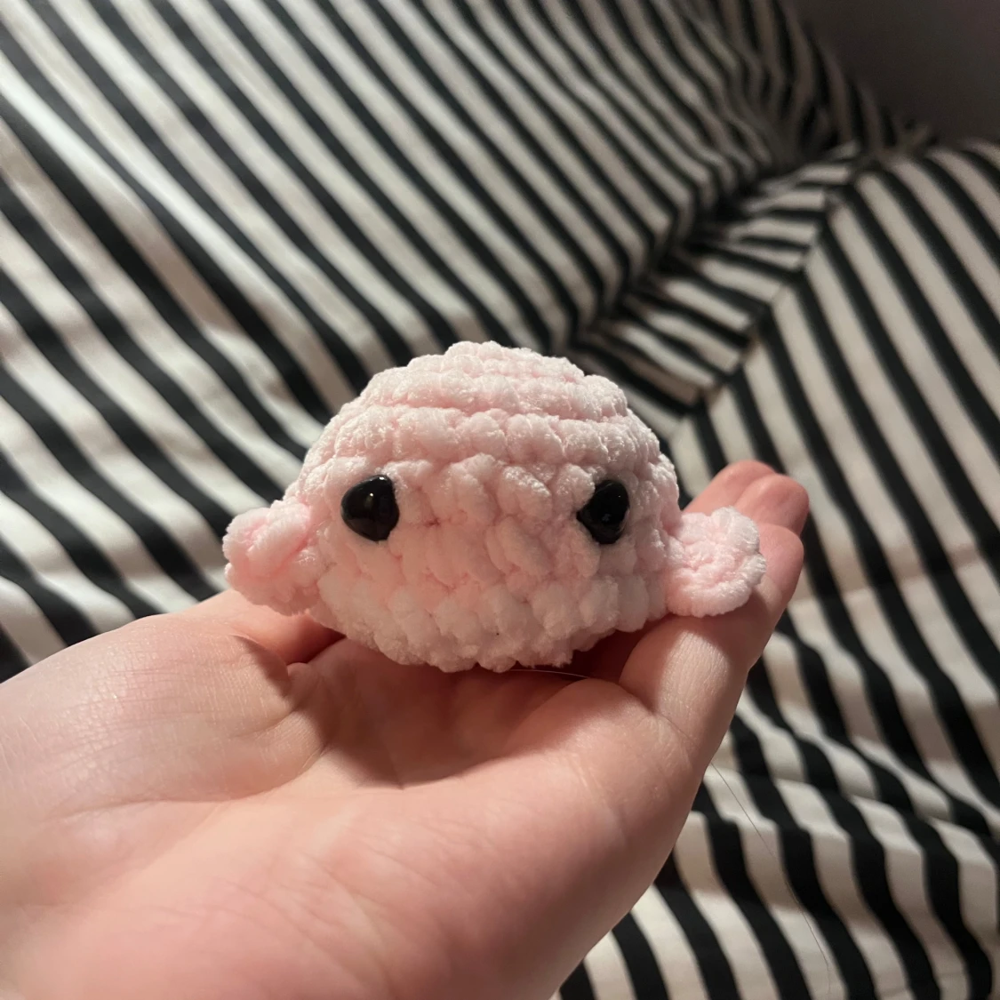 En jĂ€ttegullig rosa val. Fluffigt garn med sĂ€kerhetsögon. SĂ€kerhetsögon rekommenderas inte till barn under tre Ă„r eller hundar!âŒïž