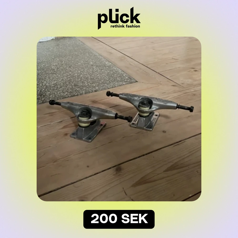 Passar 8” brädor. Säljer dessa fin fina truckar då de inte passar på min nya bräda, de har är smått grindade så inga djupare märken. Fungerar perfa, har hjulmuttrar med men dock inte skruvar 🙏
