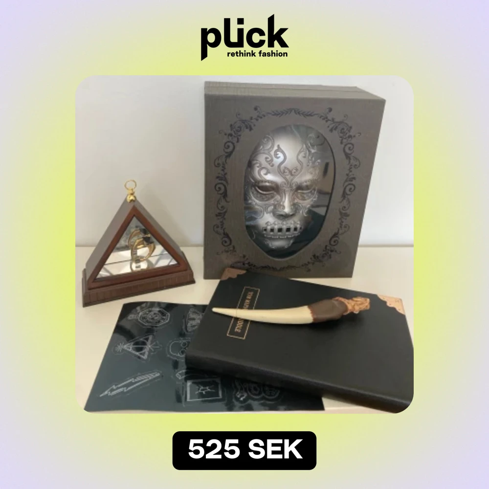 Death Eater mask, Tom Riddle’s diary, Marvolo Gaunt’s ring, stickers, Basilisk tooth (pen)