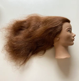 Övningsdocka i fint skick! Funkar utmärkt för håruppsättningar och andra typer av styling. Går att styla med värmeverktyg såsom locktång & plattång.
