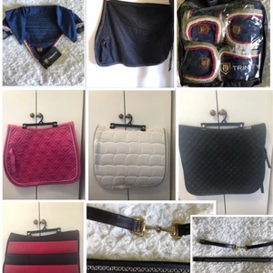 Nu säljer jag mina rid saker. Priser: blå huva st full 150kr oanvänd. Svart ländtäcke st full 100kr oanvänd. Blå lindor 170kr oanvända. Rosa schabrak st full nästa oanvänt. Vit schabrak st full 120kr nästan oanvänt men lite smutsigt. Svart schabrak st full 70kr. Svart rosa schabrak st full 100kr nästan oanvänt. Pannband st full 10 kr st. Skriv för fler bilder. Jag kan mötas i Stockholm annars frakta, frakt kostnaderna är olika.