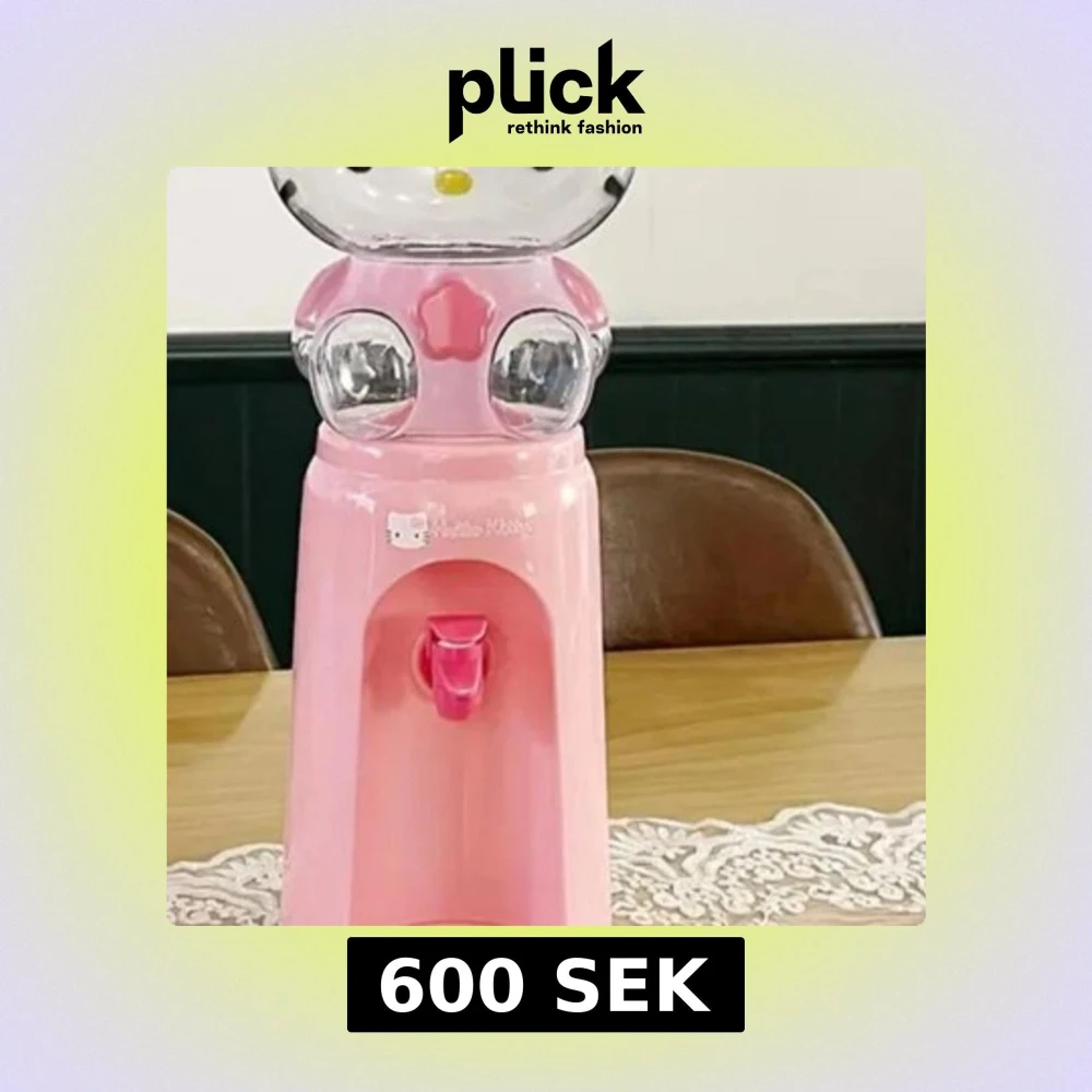 Söt Hello Kitty vattenautomat i rosa plast, perfekt för barnrummet eller köket. Enkel att använda med tryckknapp och tydlig Hello Kitty-design. Ser ut att vara i mycket gott skick utan synliga skador eller slitage. Perfekt för vatten, saft eller andra drycker.