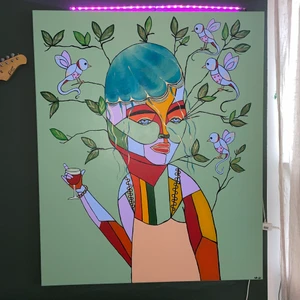 Tavla ”Vi skulle ju ses på ett glas vin..”, akryl på duk, 120x100 cm. Hämtas hemma hos mig i Hägersten, Stockholm. Kvitto ges till köparen 🌸 fler bilder skickas vid önskemål 🌸