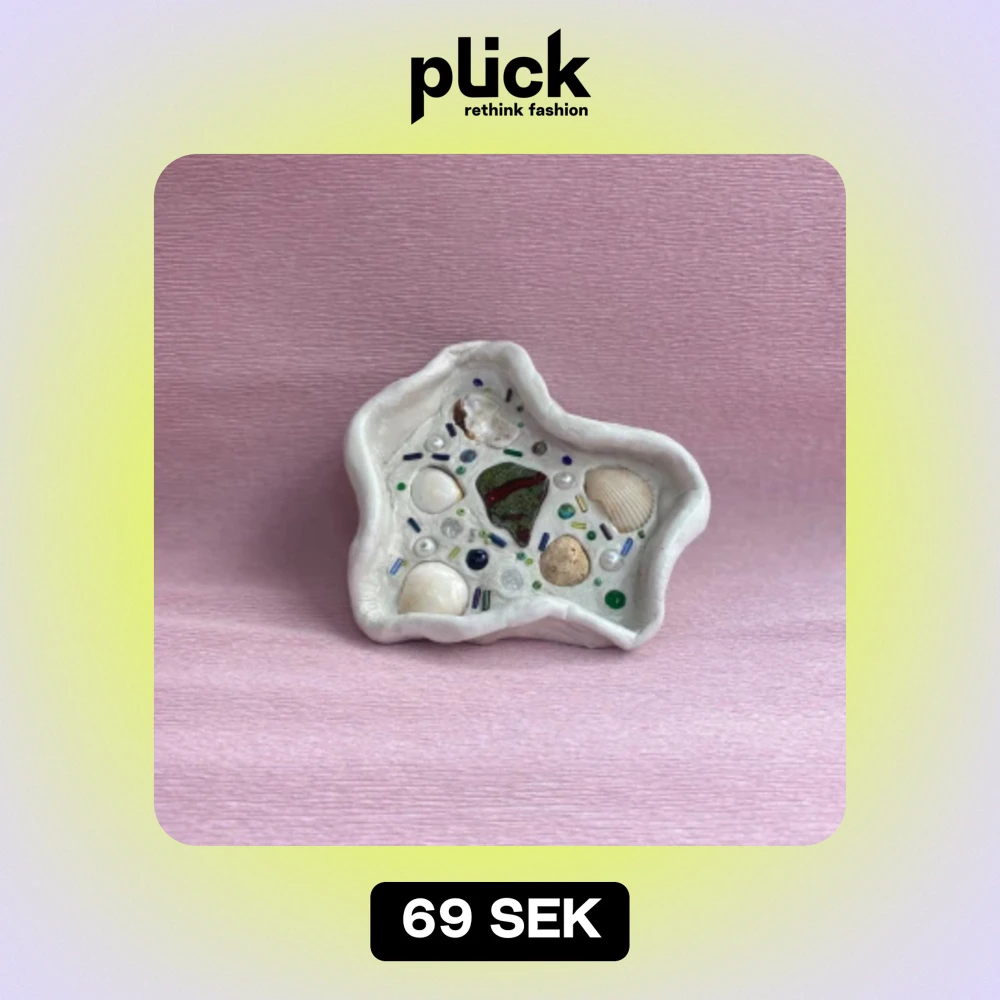 HEMMAGJORD!! Smyckesskål gjord i lera som jag satt fast pärlor, snäckor och annat krimskrams och sedan lackat för att den ska hålla bra. Perfekt att ha smycken i eller ha som dekoration.