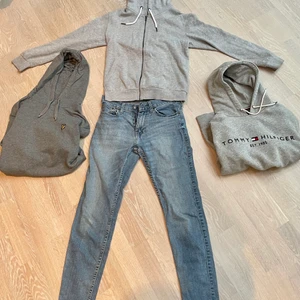 Nyskick! Hollister Jeans: 100kr. Storlek W28 och L30. Reserved (zip tröja): 80kr. Storlek S. Tommy Hilfiger hoodie: 200kr. Storlek M. Lyle & scoot hoodie: 200kr. Storlek M. Två i ett: zip tröja + jeans = 150kr. Frakt ingår inte☺️