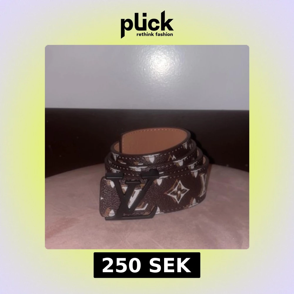 Snyggt brunt bälte från med klassiskt monogrammönster i vitt och beige. Bältet har en stor logga i svart metall som spänne och är gjort i präglat skinn. Perfekt accessoar för att lyfta din outfit.
