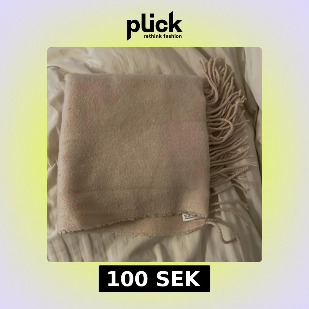 Säljer en stilren beige halsduk från H&M med fransar i ändarna. Perfekt för att hålla dig varm under kyliga dagar. Den är mjuk och bekväm att bära.