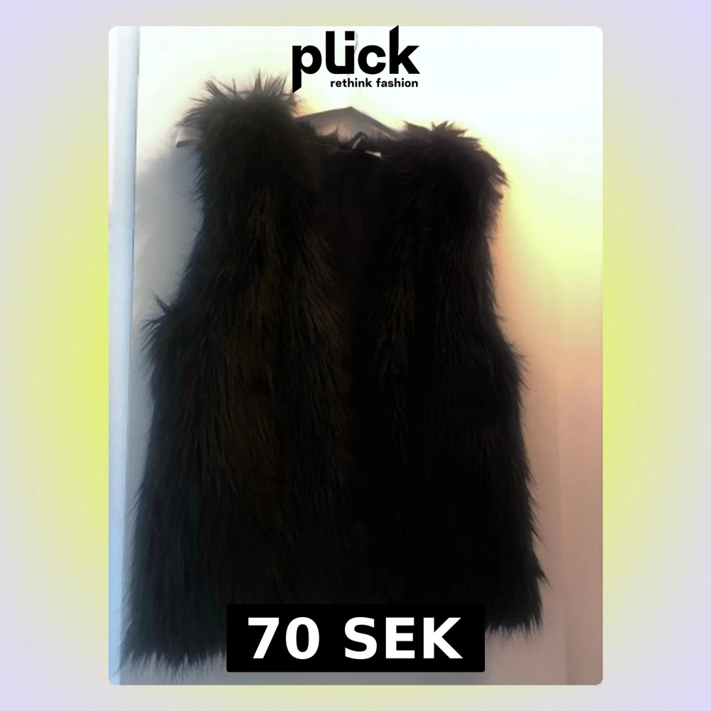 Säljer en svart pälsväst från H&M i storlek 42. Västen har lång, fluffig fuskpäls och är helsvart med enkel, rak passform. Perfekt att slänga över en hoodie eller tröja för en cool look.