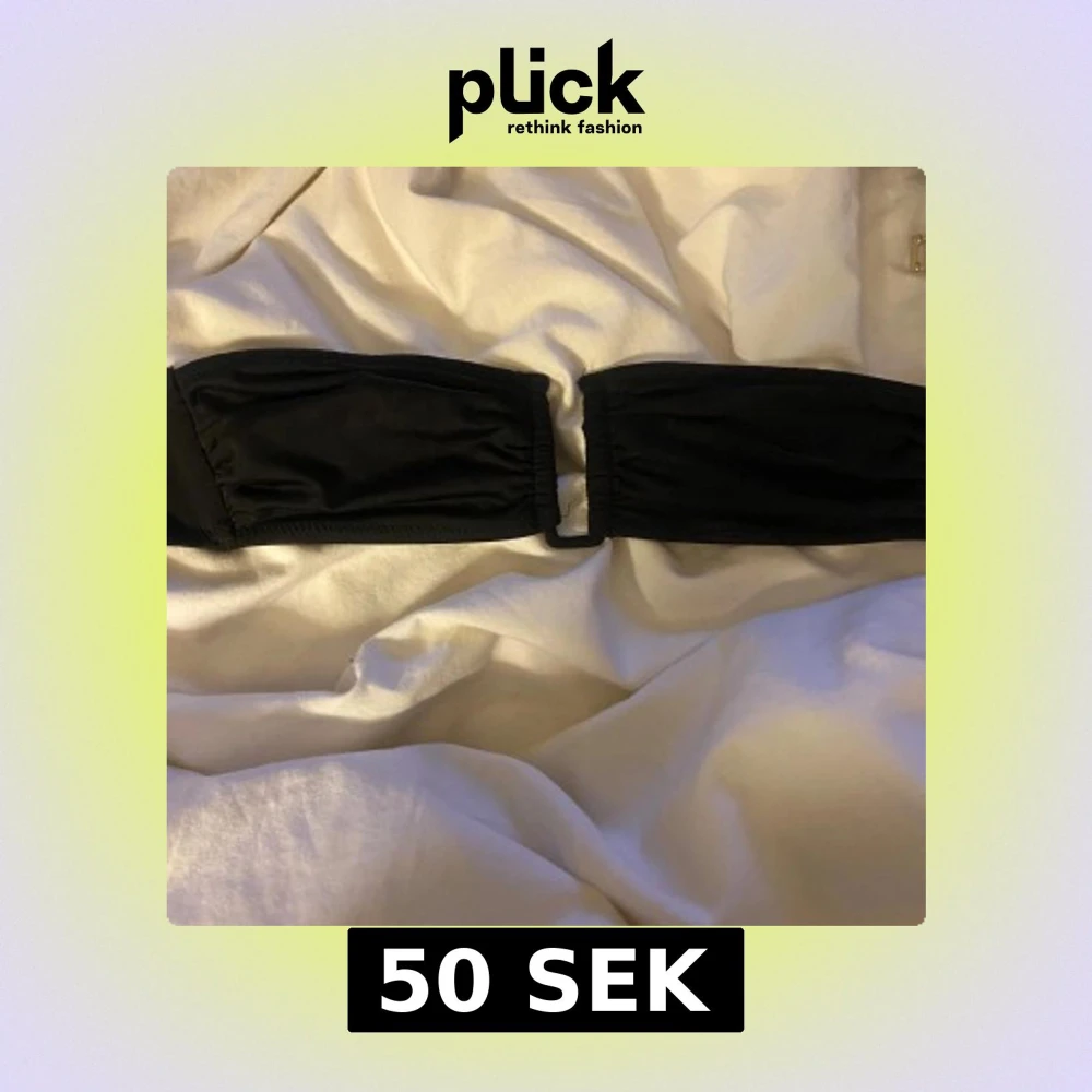 Säljer en svart bandeau bikiniöverdel från H&M. Enkel och stilren design utan axelband, perfekt för soliga dagar på stranden eller vid poolen. Tillverkad i mjukt och stretchigt material för bekväm passform.