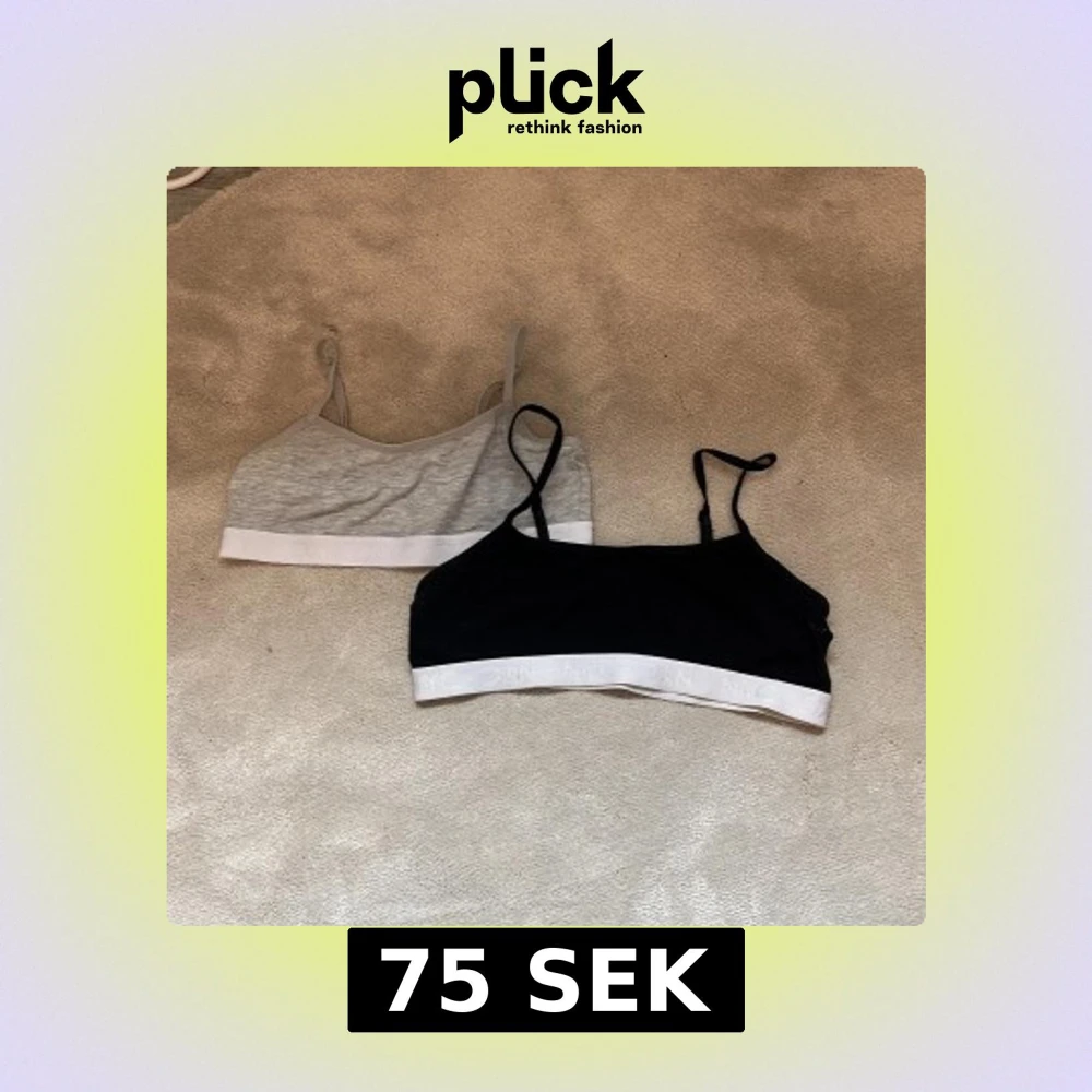 Två stycken trikåttopp från H&M, en i svart och en i ljusgrått. Båda har smala axelband och vit resårkant nedtill med logga nertill. Hör av er vid frågor eller intresse❤️