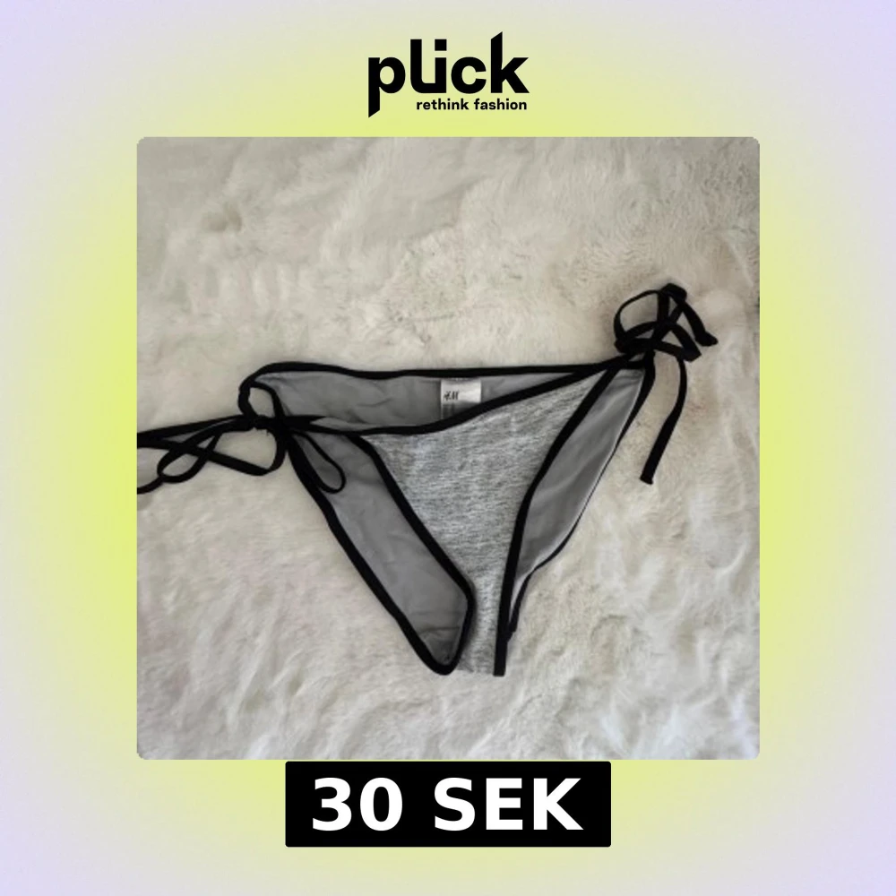 Snygg bikiniunderdel från H&M i grått med svarta kanter och knytband i sidorna. Modellen har en klassisk trekantsform och är enkel att justera med snörning. Perfekt för strandhäng och poolparty! Materialet är mjukt och bekvämt syntet.