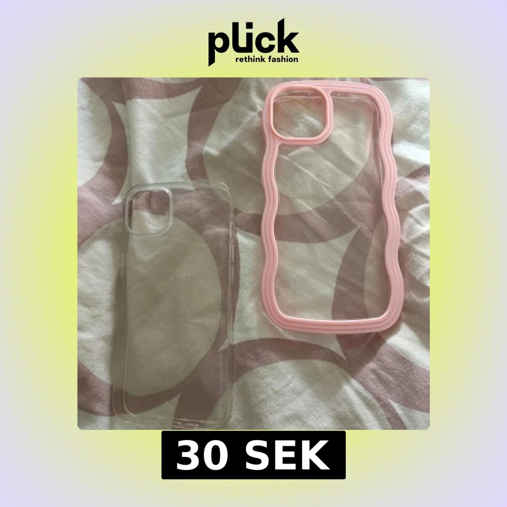 2 iPhone 14 skal helt nya, ena är genomskinligt med glitter och andra rosa ”bubbliga” kanter