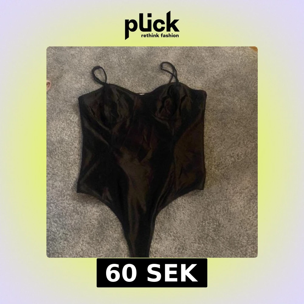 Snygg svart body från H&M med smala axelband och högt skuren benform. Materialet är glansigt och känns mjukt mot huden. Perfekt för dig som gillar stilren och enkel design💕💕