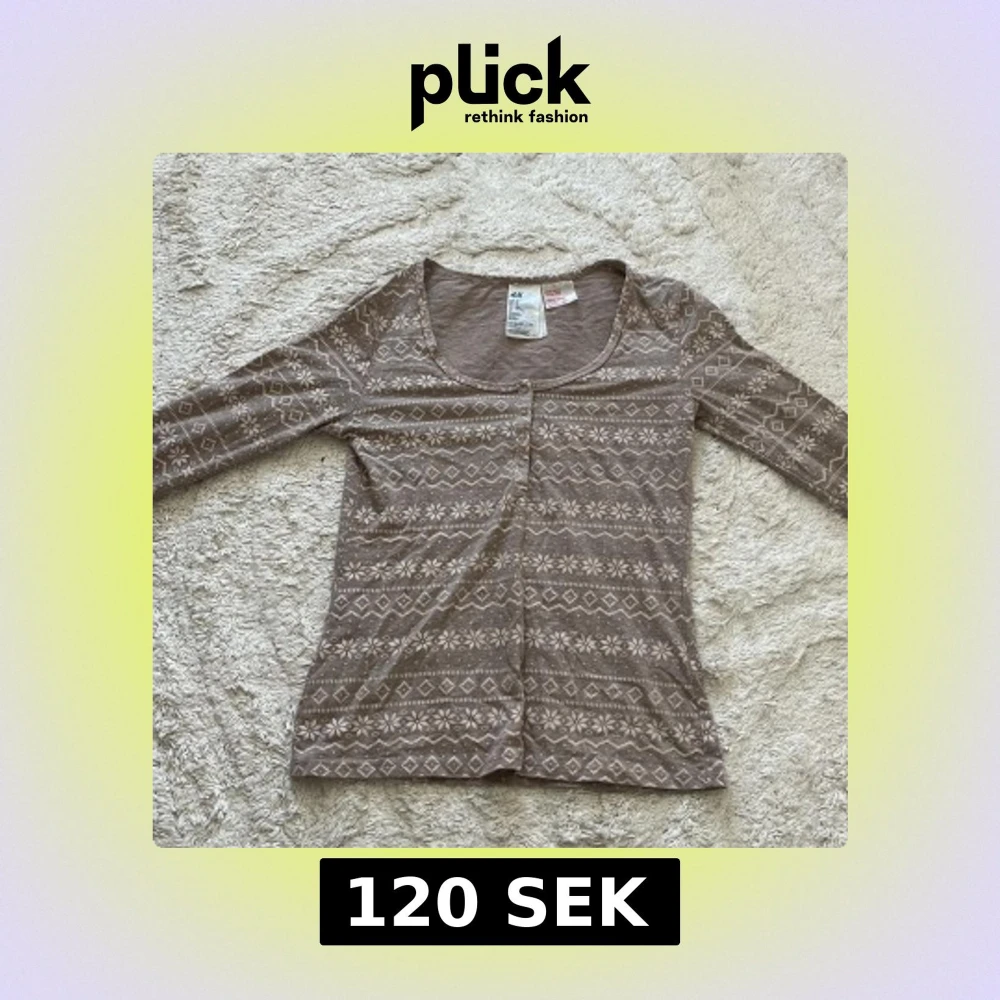 Superfin beige långärmad pyjamas tröja från H&M med coolt geometriskt mönster i vitt. Tröjan har rund halsringning och knappar framtill. Tillverkad i mjuk bomullsblandning med polyester och lite stretch för extra komfort.