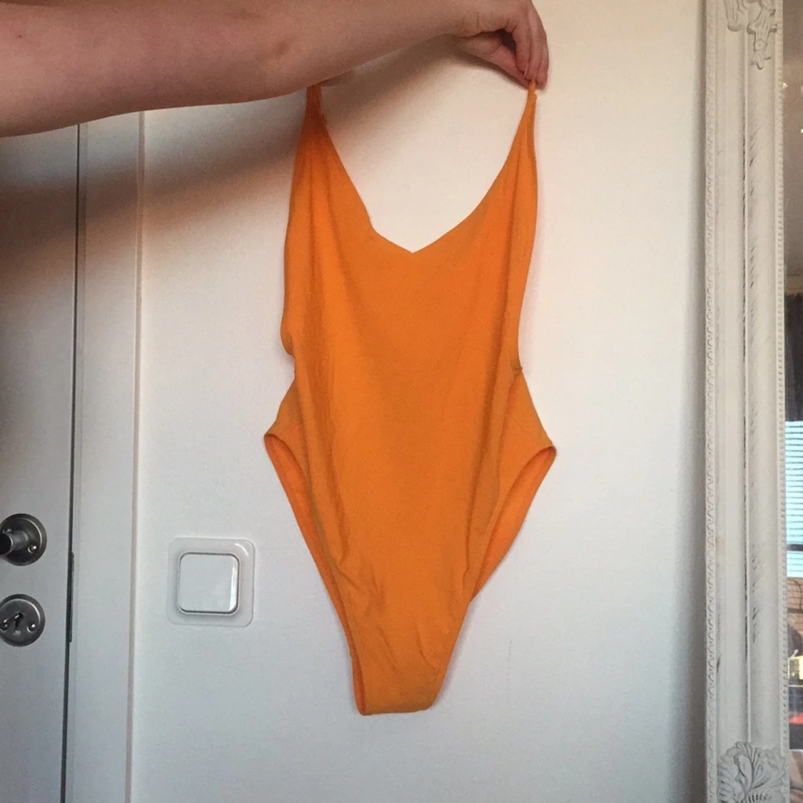 Supersnygg gul baddräkt med låg rygg och högt skuren i benen. Helt oanvänd, säljes pga fel storlek då jag köpt den online.
