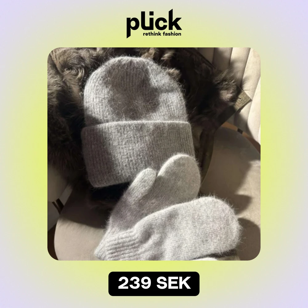 Gråa mohair mössor och vantar🤍 Pris: 279 kr för en mössa, 239 för vantar och ett sett för 469 kr🌟 Beställ genom att skriva till oss.
