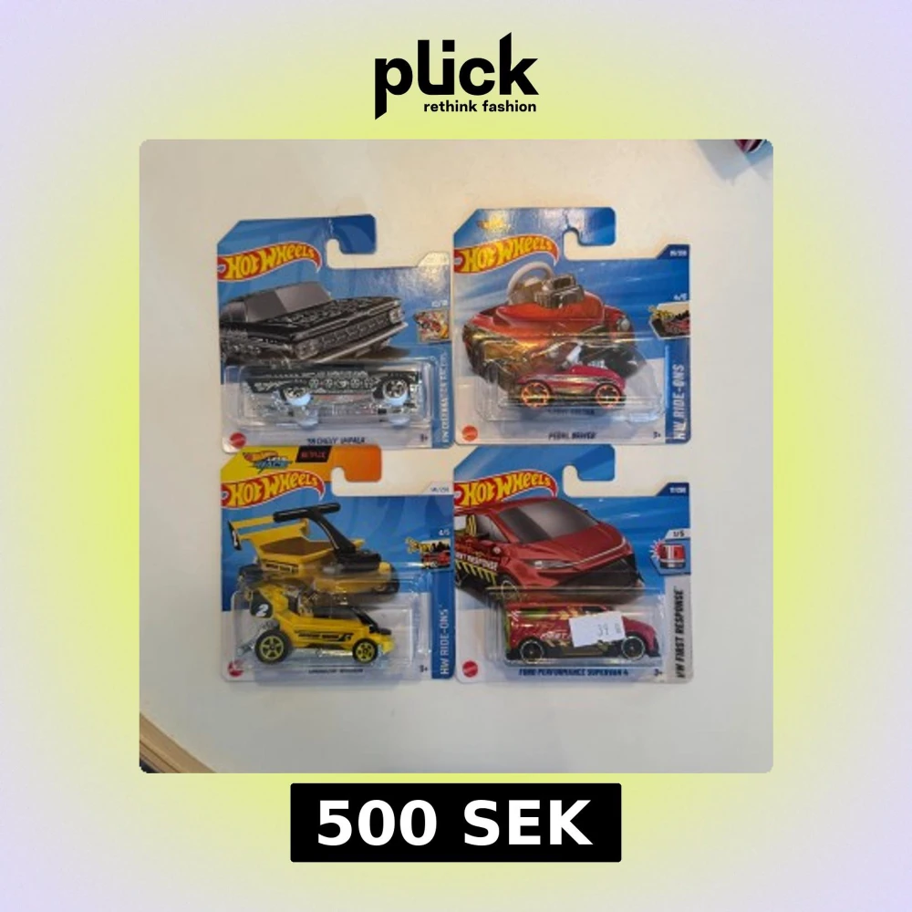 Säljer en Hot Wheels Ford Performance Supervan 4 i rött med svarta och gula detaljer. Bilen är i originalförpackning och har sportig design med texten 'First Response' på sidan. Perfekt för samlare eller som leksak.