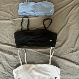 Träningstoppar från gymshark i 3 olika färger och användna i gott skick. Alla tre topparna är i storlek M och har ilägg till kuporna som går att plocka ur. 80 kr/st eller 200kr vid köp av alla tre. Köparen står för frakten.
