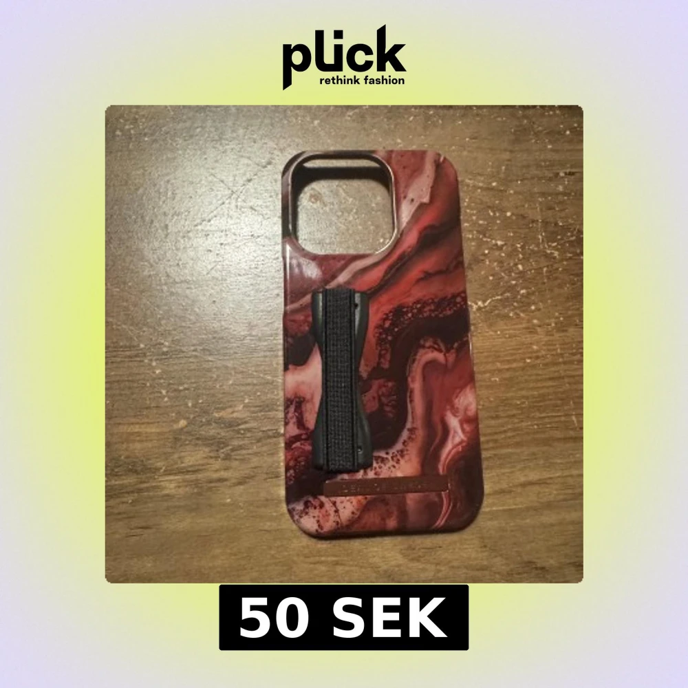 Snyggt mobilskal med marmormönster i rödbruna nyanser. Skalet har ett praktiskt elastiskt handtag för bättre grepp. Perfekt för att ge din mobil en stilren look.
