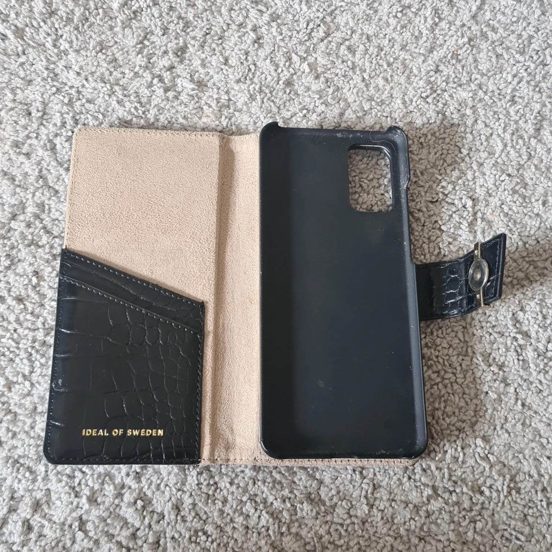 Snyggt svart plånboksfodral från Ideal of Sweden med krokopräglad yta och magnetlås. Fodralet har plats för kort och mobilen, och är gjort i skinnimitation. Perfekt för dig som vill ha både stil och funktion i ett.