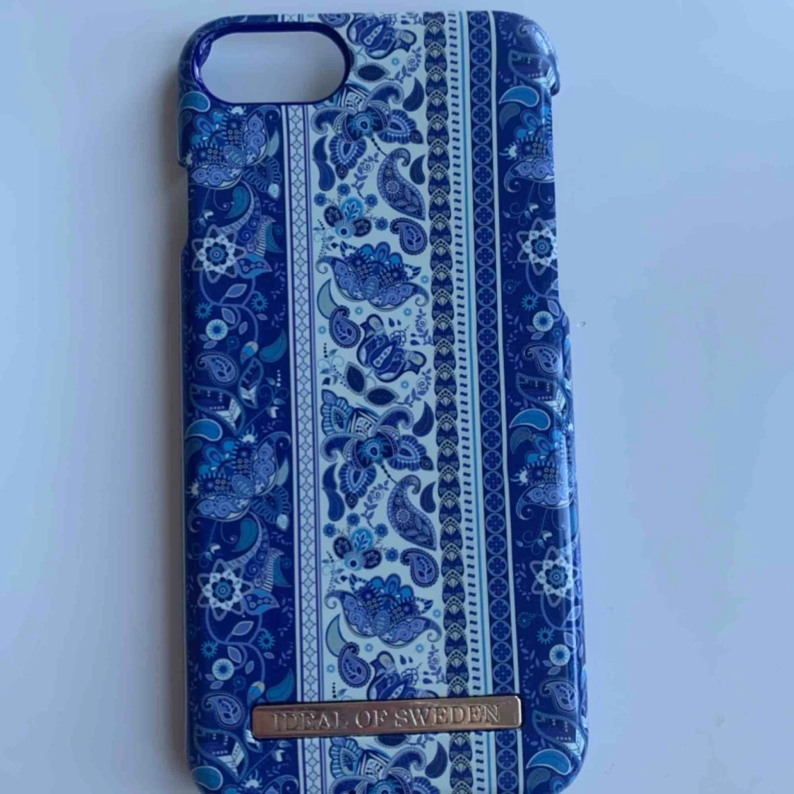 Blått/vitt skal från Ideal Of Sweden, passar till iPhone 7/8. Där det står ideal Of Sweden har det tappat lite färg (se bild 2) Skriv för prisdiskutering.