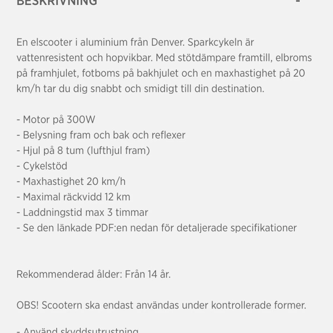 Säljer min el skoter eftersom att jag inte använder den mer funkar perfekt och är i bra skick men lampan e sönder men funkar som vanligt