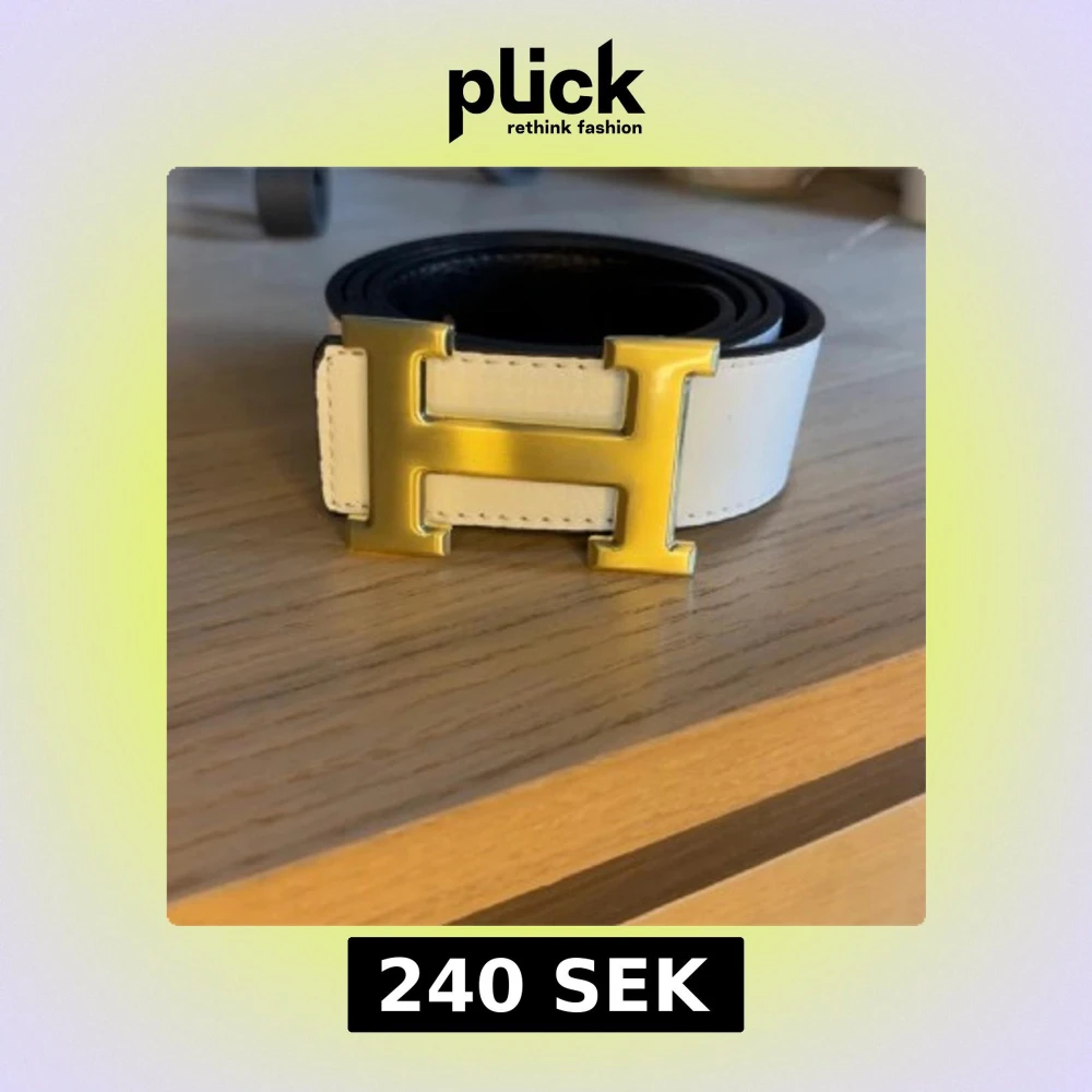 Intresse koll på mitt vita h bälte med guldigt spänne.