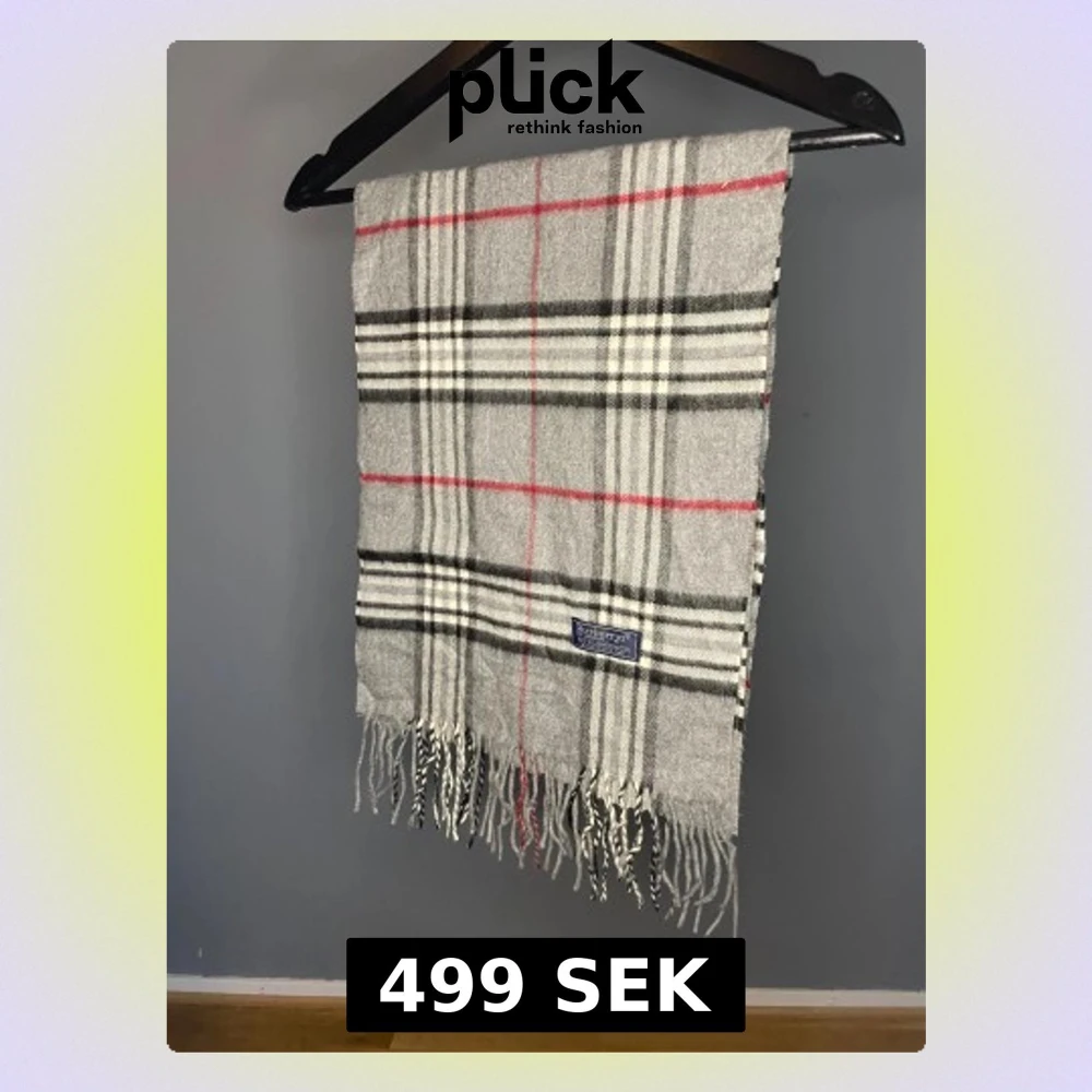 Snygg halsduk från Burberry i klassiskt rutigt mönster med grå, svart, vit och röda detaljer. Gjord av 100% lammull, med tvinnade fransar i ändarna och en diskret Burberrys-label. Perfekt för att lyfta din vinterstil.